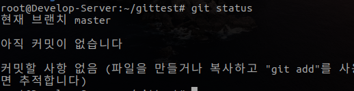 기본적으로 현재 디렉터리의 상태를 보고하는 명령인 git status로 초기 상태를 확인해보면 다음과 같습니다.