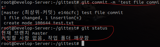 status로 결과를 확인하면 다음과 같이 잘 커밋된것을 확인할수 있습니다.
