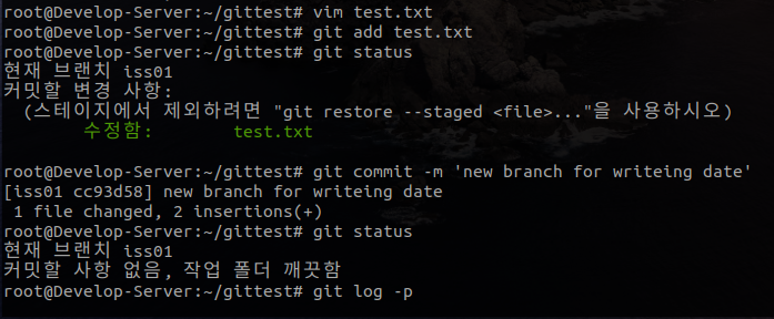 이제 원하는대로 파일을 수정한후 새로운 가지에 커밋해보겠습니다.