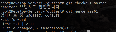 수정한 내용에 이상이 없어 병합하고 싶다면 명령어 git merge를 사용합니다.