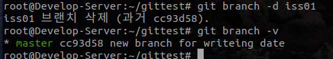 이제 필요없어진 가지인 iss01은 -d옵션으로 삭제 할수 있습니다.