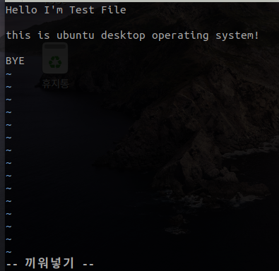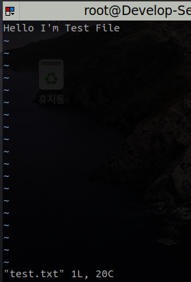그리고 테스트를 위한 텍스트 파일을 하나 vi에디터를 통해 만들어 보겠습니다.