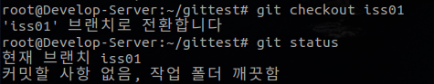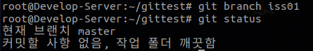 그러면 새로운 가지인 iss01로 이동되었고 현재 브랜치가 iss01로 되어있는것을 확인할수 있습니다.