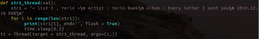 하지만 음악은 음악대로 실행되고 동시에 정보를 출력하는 함수까지 실행하기 위해 스레드를 이용하였습니다.