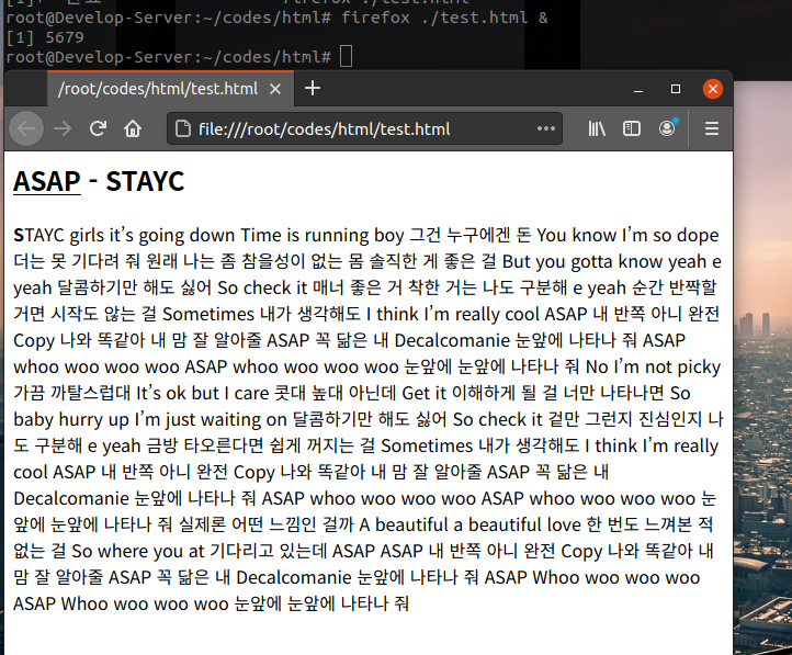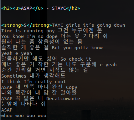 기획 - strong u h1 태그를 이용한 노래가사 출력 웹페이지만들기