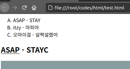 여기서 <ol> 태그를 부모 리스트로 사용할때의 예는 다음과 같습니다.