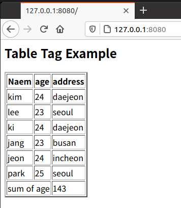 먼저 Table 태그를 이용해서 만들어볼 결과 페이지는 다음과 같습니다.