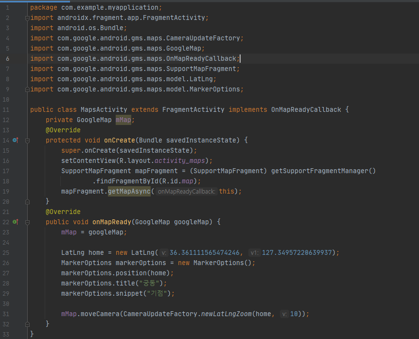 이번 포스팅에서는 Google Maps Android API를 이용해서 어플리케이션 내에 좌표 찍기를 해보겠습니다.