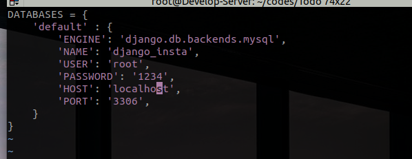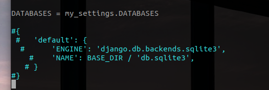 그리고 프로젝트 디렉터리 내의 settings.py 파일에 방금 만든 파일을 import 해주고 데이터베이스 관련 설정 탭을 아래와같이 편집합니다.