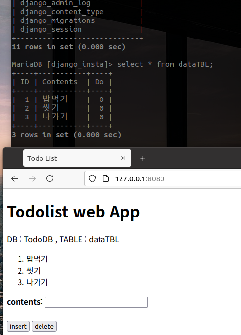 이번 포스팅에서는 장고와 mysql을 연동해보고 html 카테고리에서 호스팅했던 웹페이지를 살짝 건드려서 웹페이지에 데이터 베이스 테이블이 출력되는 결과를 확인해볼것입니다.