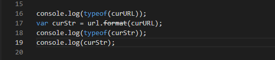 url객체로 문자열인풋을 변환해주는 함수는 url모듈내에 있는 parse함수 입니다. 제가 사용하는 에디터에서는 사용을 추천하지 않는다는 의미로 취소선이 그어져있지만 실행에는 무방합니다 (왜 비추천한다하는지는 잘 모르겠습니다. 담에 좀더 알아볼께요)
