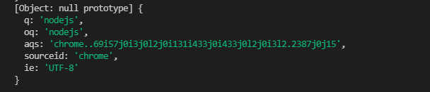 제가 검색한 nodejs 라는 검색어가 쿼리의 q부분에 위치하고 있습니다.