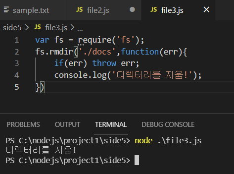 마자막으로 node.js의 파일시스템을 이용하여 새로운 디렉터리를 만들고 삭제하는것을 다루어보겠습니다.