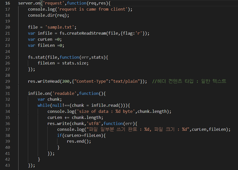 지난 포스팅에 이어 http 모듈의 메소드를 사용할것이고, 파일의 내용을 읽어와 버퍼에 담아 일부분만 응답하는 예제를 먼저 해보겠습니다. 다른 웹의 데이터를 가져오기위해서는 버퍼를 활용해야 하기때문에 잠깐 다루겠습니다.