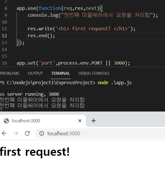 그럼 지금부터 미들웨어로 클라이언트에 응답을 보내보겠습니다.
