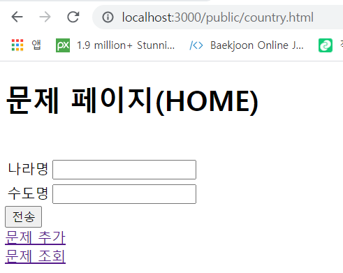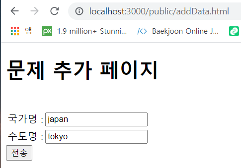 이번포스팅에서 진행해볼 컨텐츠는 지난번에 만들어본 DB연동 수도퀴즈 웹사이트에서 유저가 문제를 조회할수 있고 추가할수도 있도록 해보았습니다.