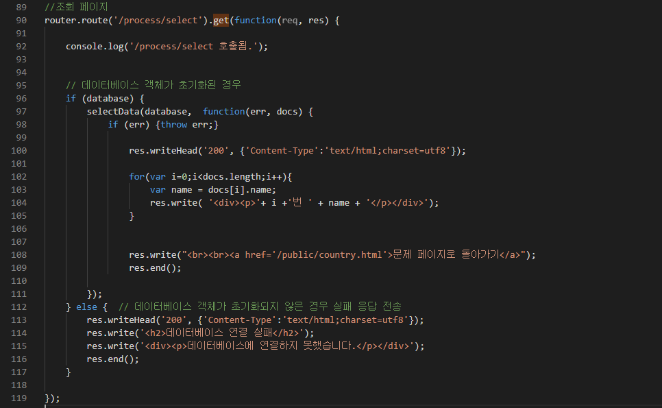 추가적으로 할일은 DB내의 데이터를 모두 조회하여 페이지에 출력하는일이었습니다. 코드는 아래와 같습니다.