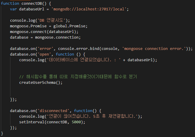 4.1 몽구스 디비를 이용한 커넥션 생성만들기(스키마, 모델 함수분기),