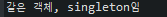 System.out.println("같은 객체, singleton임");