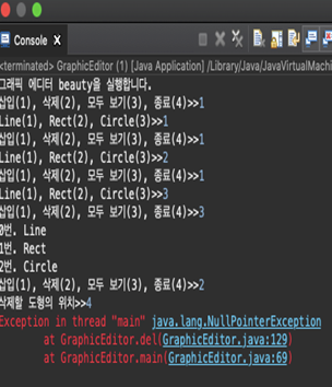 4. 디버깅을 하던도중 삭제연산에서 만약 리스트의 범위보다 인덱스가 더큰 값이 들어올 때 Null exception이 발생했습니다.