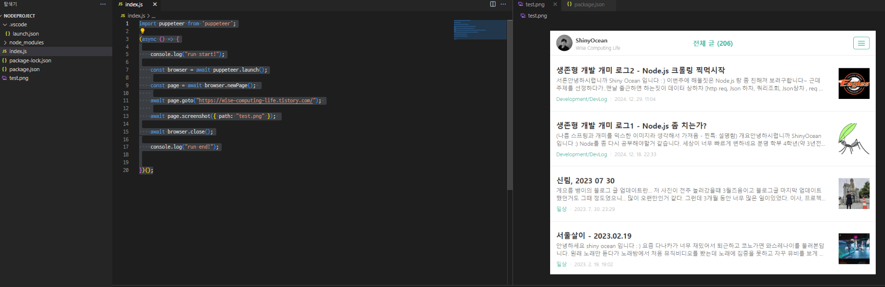 index.js 하나 파서 console.log 하나찍고 터미널에서 "node index.js" 실행해서 대강 결과 봤습니다.