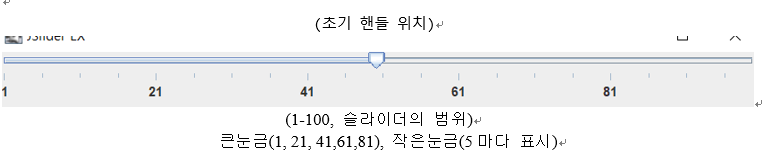 위 문제는 수평슬라이더이며 폰트의 크기를 1부터 100까지 조절가능해야 한다함으로