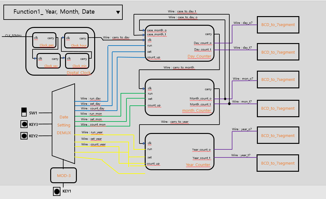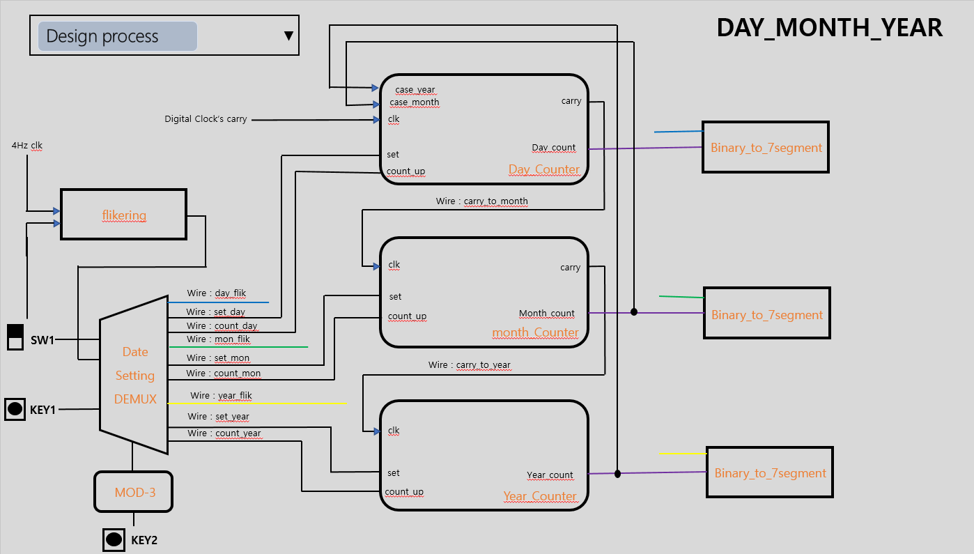 만약 디먹스의 클럭에 따라 Month카운터의 날짜를 셋팅하고 있다면 Month카운터의 아웃풋이 연결된