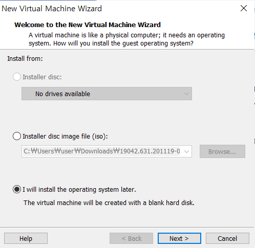 다운받아둔 ISO파일의 저장위치를 타이핑하거나 Browse...를 클릭하여 직접 찾아가서 지정해주면 됩니다.