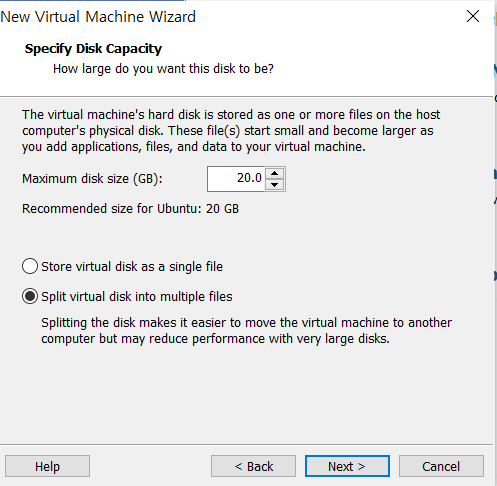 설정한 만큼의 용량을 정확히 차지하지는 않습니다. 만약 노트북 하드디스크용량이 120GB인데 가상머신의 하드디스크 용량을 500GB로 설정하신다고 해도 설치시 문제는 없습니다. 저는 20기가로 하고 넘기겠습니다.