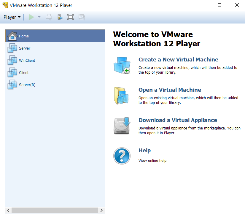 VMware Workstation Player를 실행하실경우 아래와 같은 창이 열릴것입니다. 저의 경우 이미 4대의 가상컴퓨터 환경을