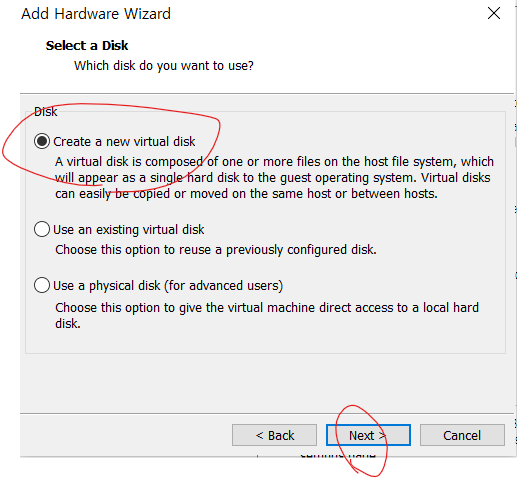 새로운 가상 디스크를 추가한다는 체크 박스를 선택후 Next