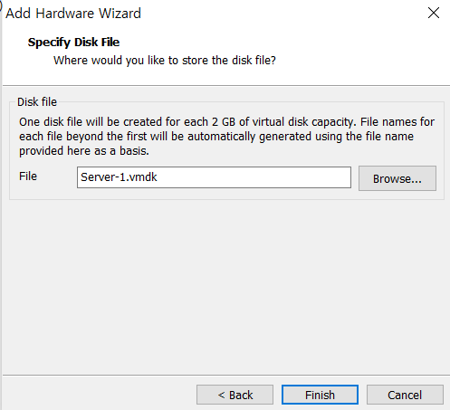 디스크 이름은 본인이 원하는 이름으로 하고 Finish 를 눌러 주면 장치 추가 완료입니다