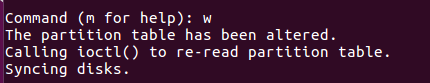마지막으로 write 의 약자 w를 입력하여 파티션을 적용하여 줍니다.