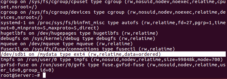 재부팅후 mount 명령어를 통해 마운트 된 목록을 확인해보면