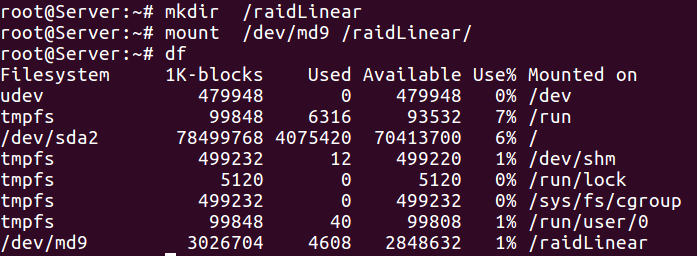 그럼 /dec/md9가 3기가 바이트 저장공간으로 확보되었음을 확인할수 있습니다.
