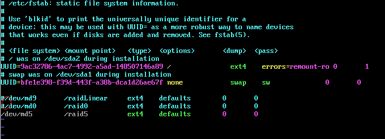 그리고 RAID를 구축할떄마다 설정해주었던 fstab 또한 다시 수정해 주겠습니다.
