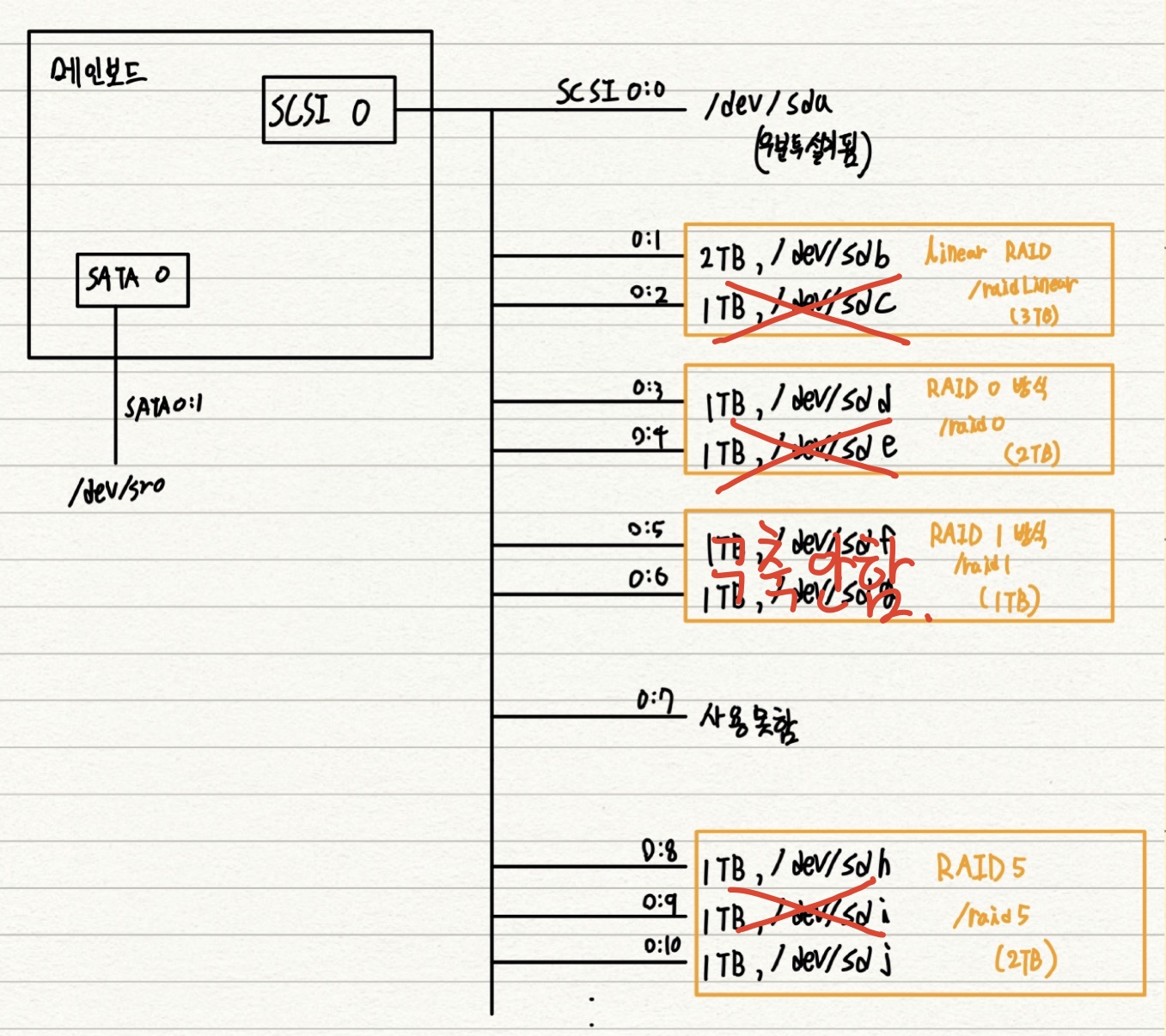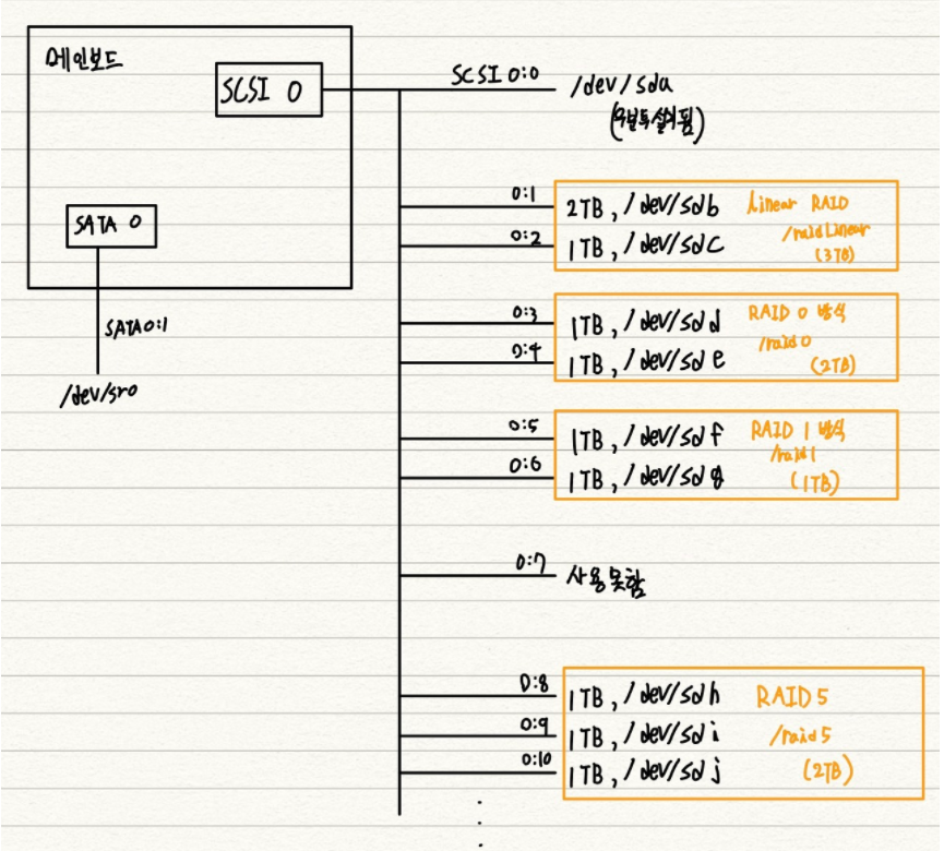 먼저 지금까지 해둔 RAID 장비들을 살펴보겠습니다.