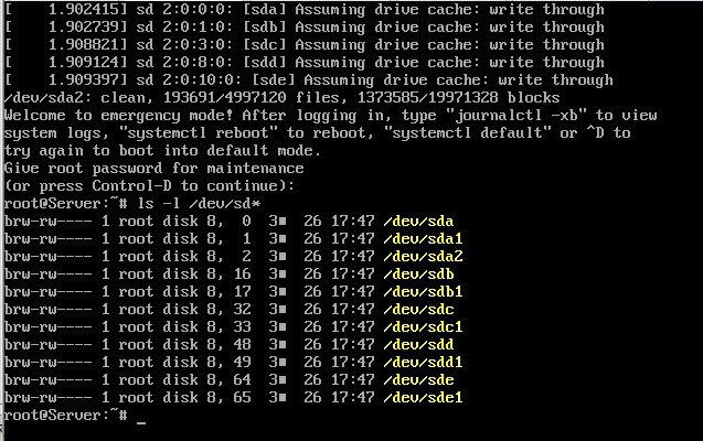 ls -l 명령어를 사용하여 살아있는 디스크를 확인하니 이전에 연결되었던 디스크는 날라가고 남겨우었던 디스크들 만이 남아있는것을 확인할수 있습니다.