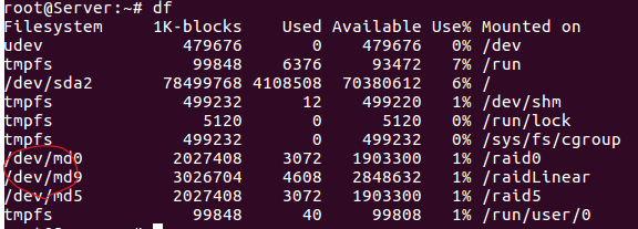 총9 개의 물리디스크를 이용하여 Linear RAID, RAID0, RAID1, RAID5 를 구축해 두었죠?