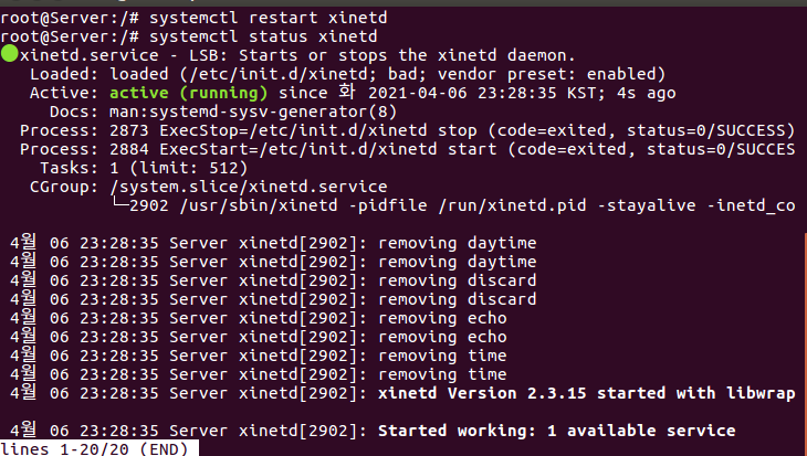 systemctl restart 명령은 서비스를 재가동 하는 명령어 이고