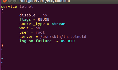 다음은 설정파일을 편집해 주어야 합니다. 경로는 /etc/xinetd.d 이고 파일명은 telnet입니다.