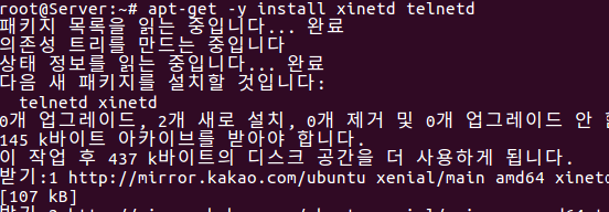 먼저 서버로 사용할 우분투 데스크탑 환경에서 xinetd telnetd라는 패키지를 apt-get 명령어를 통하여 설치합니다.
