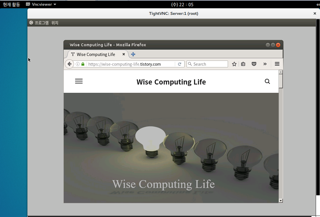 xtightvncviewer라는 클라이언트 패키지를 설치후 접속해보겠습니다.