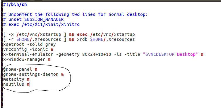 /root/vnc/xstartup 파일인데 gedit을 통해 연후 마지막라인에