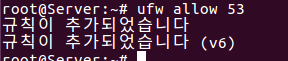 방화벽 포트를 열어줍니다 똑같이 53번 포트이지만 이번엔 /tcp를 붙이지한고