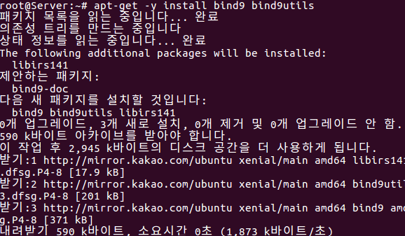 먼저 우분투 리눅스를 부팅후 터미널을 열어 네임서버 구축에 필요한 패키지들을 설치합니다.