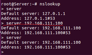 nslookup 명령어 실행후 server의 ip를 구축한 네임서버 주소로 변경후 검색을 실행하면 됩니다.