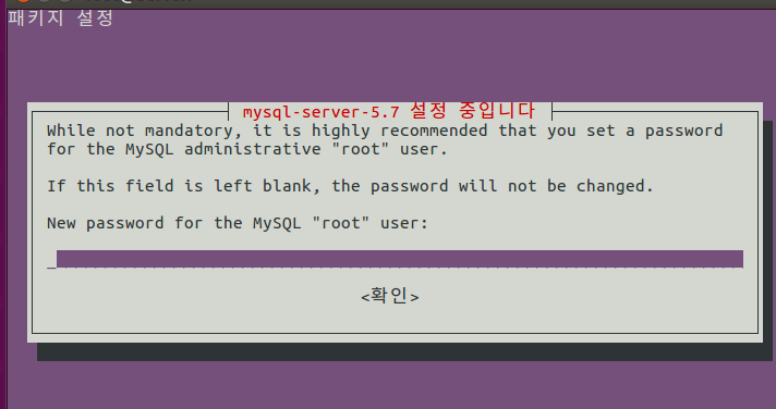 그러면 아래와 같이 mysql 의 비밀번호를 설정하라는 탭이 나오는데 비밀번호 생성후 확인으로 넘어가줍니다.
