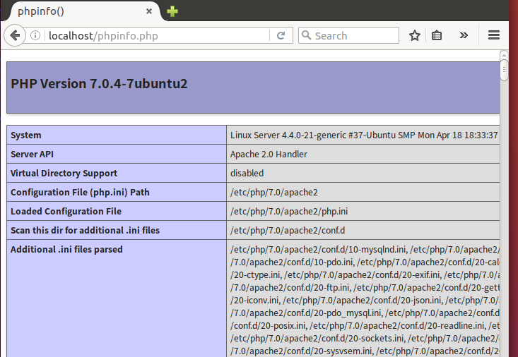 이제 다시 웹브라우져에서 localhost/phpinfo.php로 접속해봅니다.