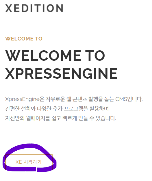 xe게시판 초기화면은 다음과 같습니다.